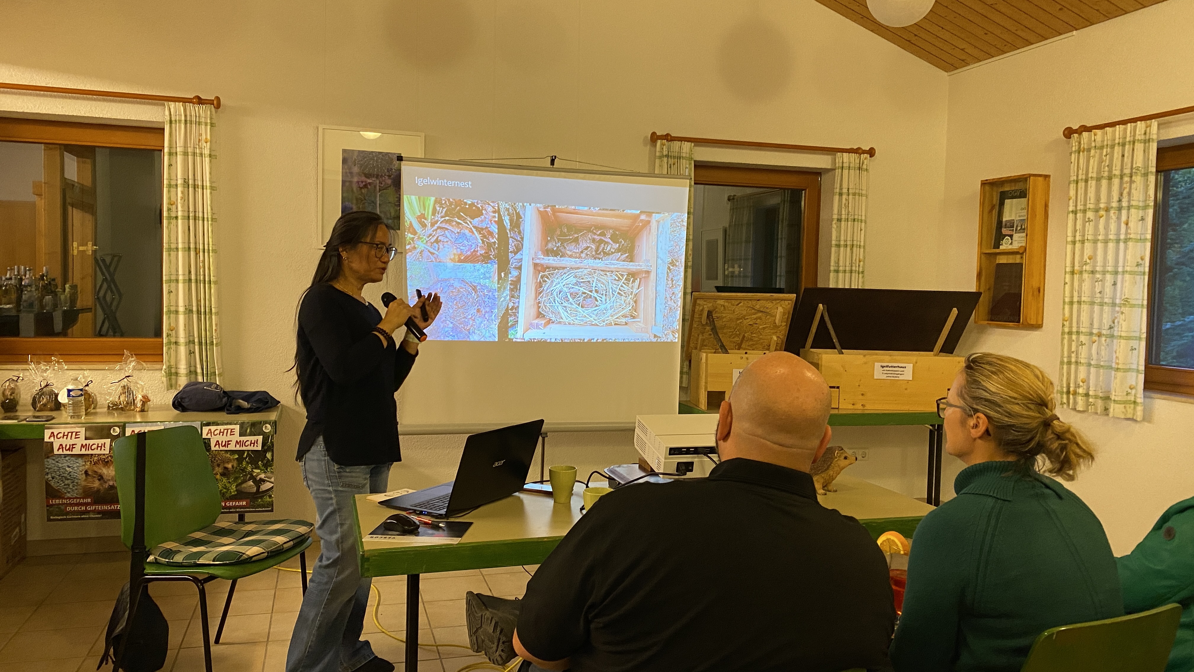 Pünktlich um 18 Uhr am 23.10.2025 begrüßte unser Mitglied und Igel kundige Myung-Joo Kim die 24 Teilnehmer und vier weitere OGV-Mitglieder, die den Raum sowie Getränke und Snacks vorbereitet hatten.