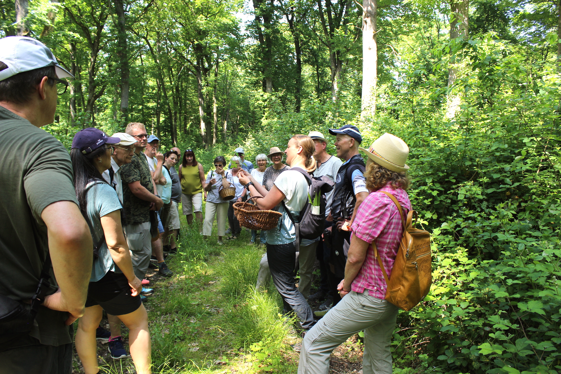 Die Wanderung mit Stephanie Schwenk am Samstag, den 31. Mai 2025, in der Umgebung unseres OGV-Geländes begeisterte die 24 Teilnehmerinnen und Teilnehmer total. Bevor es losging, begrüßte sie unser Vorstandsmitglied und Kassier Rolf Nierhaus vor unserem OGV-Vereinsheim im Gartengelände „Näheres Schöntal“ und stellte die Fachberaterin für Selbstversorgung mit essbaren Wildpflanzen vor.